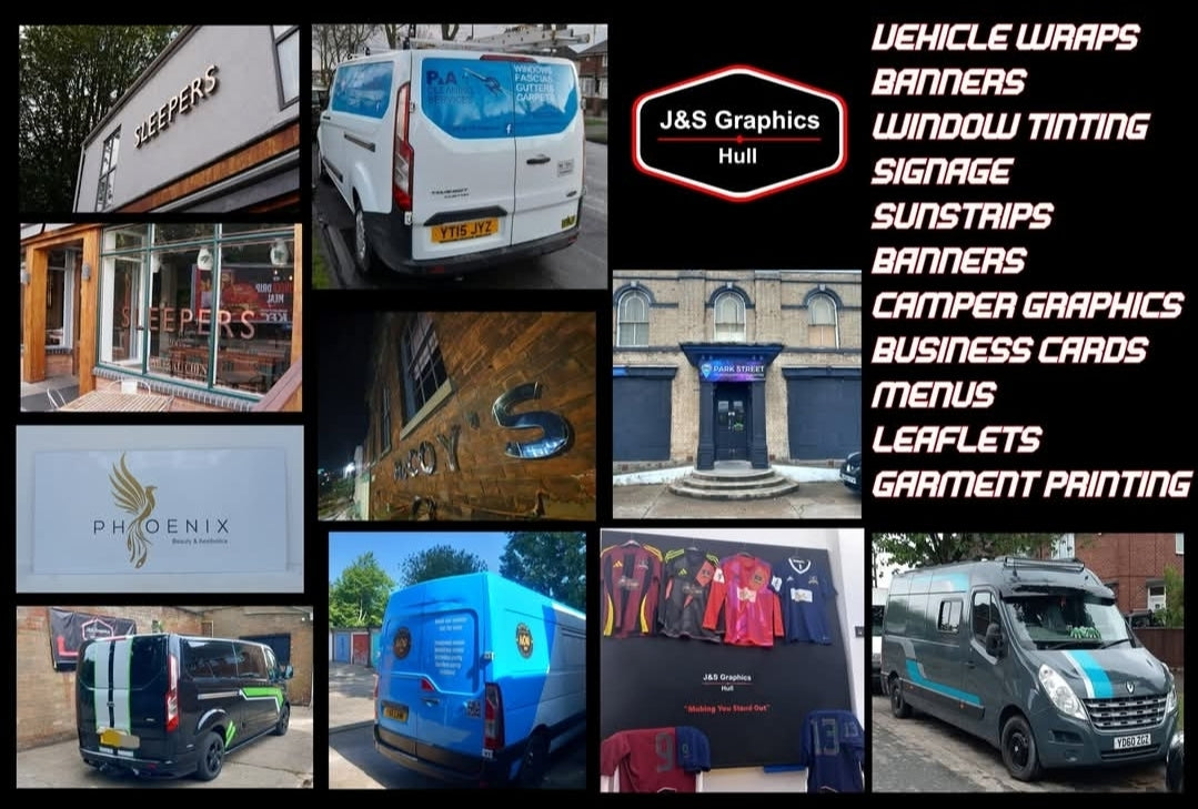 Business signs for shops & vehicles, Banners, Vehicle wraps, De chroming service, Vehicle graphics/decals, Custom signs, Made to order graphics, Magnetics, Sunstrips, Motorhome & Campervan graphics, Uniform/Tshirt & garment printing, Leaflets & Flyers, Business Cards, 3D & 4D numberplates, Vinyl by the metre